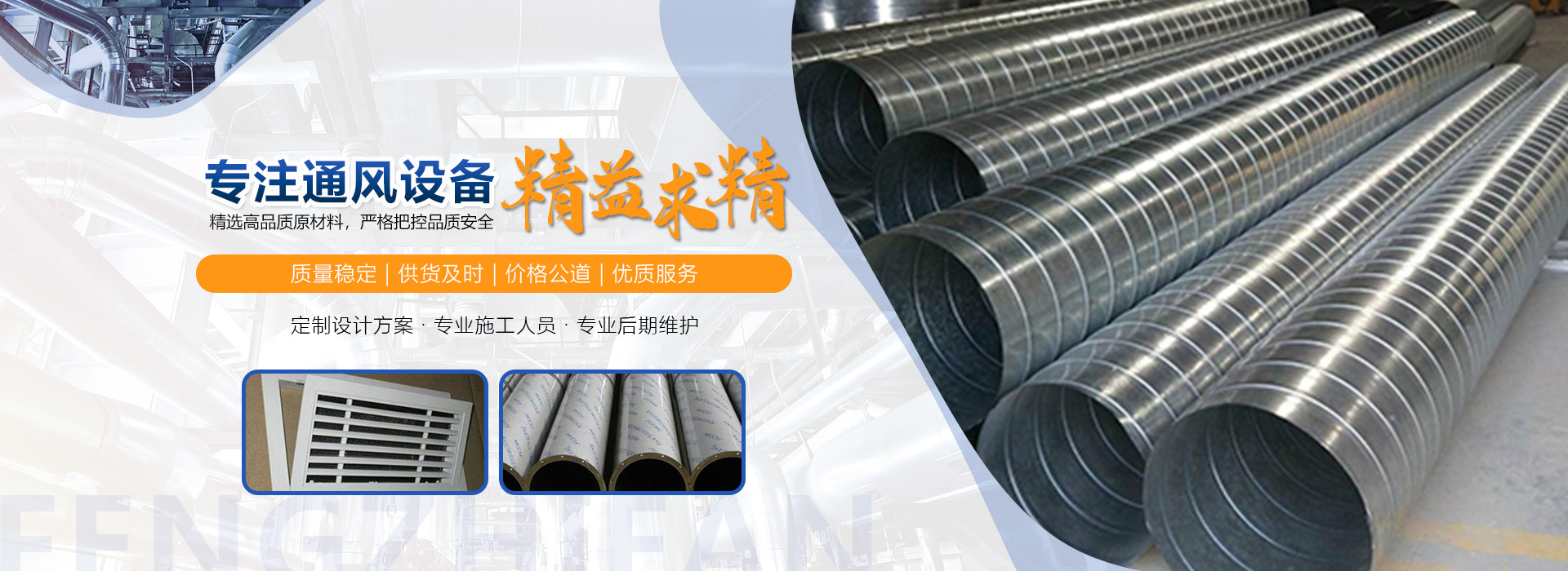 安徽風之范通風設備有限公司,是北京恒通偉業通風設備有限公司再創的新臺階,多年來,公司員工憑著“誠信敬業、團結拼搏、勇于開拓、務實進取”的企業精神,先后承接了多項重點工程項目,使公司健康穩步發展?,F由于公司的壯大,業務的拓展,又于2016年底,成功坐落于安徽省合肥市包河區。本公司生產設備精良,技術力量雄厚,質保體系完善!讓用戶體驗到,貼心的服務,無憂的售后!風之范是以加工、銷售、安裝及維護于一體的現代化企業,同時以“創未來之風、營誠信之范”為核心理念,面向全國各省市,大量生產鍍鋅板、不銹鋼、玻璃鋼、酚醛復合等通風管道、螺旋風管、廚房排煙罩、油煙凈化器、各種風機風柜、風口風閥、靜壓箱等配件設施。廣泛承接商場、工廠、酒店、寫字樓、地下室等,消防排煙工程、除塵凈化工程、室內通風工程、暖通空調工程、廚房排煙凈化工程。我們力求上進,追求,歡迎各界人士技術指導,經濟合作,共創美好明天!